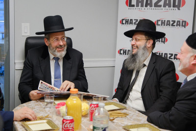During his visit, Rabbi Lau met with the directors and key staff members of Chazaq, who shared details of the organization’s diverse initiatives. From community wide events to various educational programs for public school students, to a kollel in NY and in Israel, and services for Jewish families in need, Chazaq’s impact has been felt across generations and communities.