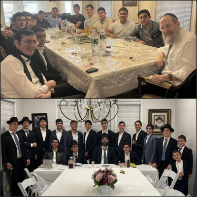After t'filah on Shabbat morning, the bochurim were treated to a grand kiddush in shul filled with all types of delicacies. The Shabbat day meal followed at their rebbe's home.