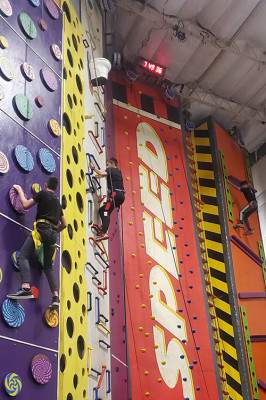 After minchah, seudat shlishit, arvit, and havdalah, the bochurim returned to their hosts, packed, and prepared for a Motza'ei Shabbat activity. The ninth and tenth grades enjoyed rock climbing, Nerf battles, and a warrior course in High Exposure followed by a melaveh malkah.