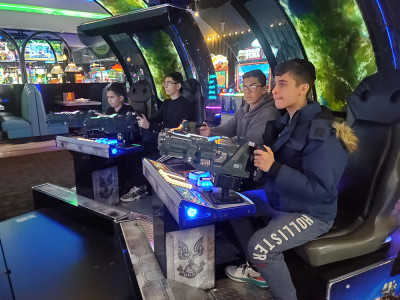 After breakfast while awaiting the bus, a group of bochurim even found time to learn in the beit medrash. The hanhalah could not help but reward their efforts with an extra fun game of virtual reality, a danish and a drink.