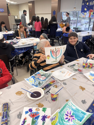 Margaret Tietz was fortunate to have the support of many groups that made Chanukah truly special. The chag began with students from Rabbi Yossi and Dina Blesofsky's Chabad School of Northeast Queens, who created beautiful art projects with the residents and sang traditional Chanukah songs. The heartfelt interactions between generations brought smiles to everyone involved.