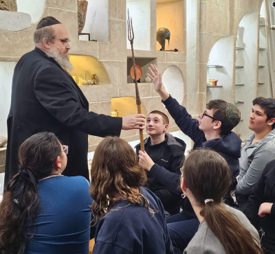 Going back even further in time, the students are shown holding their hands over their foreheads to illustrate where the gold crown of the Kohen Gadol was placed!