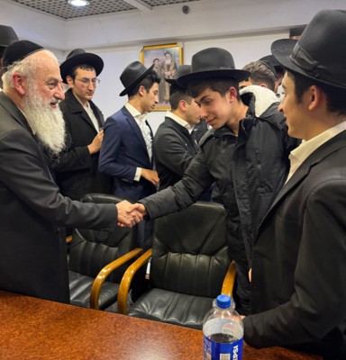 The talmidim stayed in the beautiful, upscale Hotel Yirmiyahu 33, located in the heart of the chareidi neighborhood of Romema, brimming with the richness of Torah. The seniors had the zechut to daven Shacharis with Rav Yitzchak Yosef shlit"a, former Sephardic Chief Rabbi of Israel who also serves as Rosh HaYeshivah of Yeshivat Hazon Ovadia. Afterwards, they visited various yeshivot, strengthening their connection to Torah b’kedushah.