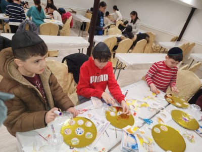 The excitement in the room was tangible as children eagerly applied their artistic talents, proudly designing plates they will bring home to use at their family Sedarim. These kinds of activities allow students to explore the traditions of Yom Tov in a personal and memorable way.