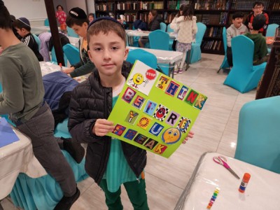 In addition, the program took a thoughtful turn as students worked on "Think Before You Speak" projects, designed to help them understand the importance of avoiding Lashon Hara (negative speech). The activity encouraged children to reflect on how their words impact others, reinforcing the Torah value of speaking with kindness and consideration.