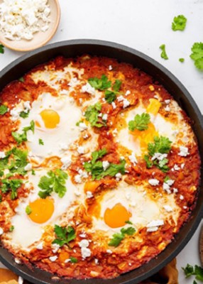 Shakshuka is a beloved Mediterranean dish that brings people together around the table. With its vibrant color, bold aroma, and comforting depth of flavor, it’s the ideal centerpiece for any brunch or casual gathering. The harmony of soft-poached eggs nestled in a savory tomato and pepper sauce—fragrant with paprika, garlic, and sweet undertones—makes every bite satisfying. Serve it straight from the skillet, garnished with fresh herbs and paired with crusty bread or warm pita to scoop up every last drop.