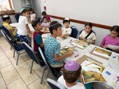 In a recent lesson, students explored the themes of Tishah B’Av, learning about the destruction of the Beis HaMikdash and the tragic events that have marked this somber day throughout Jewish history. To help internalize the message, children completed Tishah B’Av–themed projects, designed to spark both reflection and emotional connection to Klal Yisrael’s collective past.
