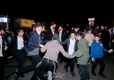 The atmosphere soared when Uri Davidi and keyboardist Ezra Eliyahu of North Woodmere took the stage, instantly igniting the crowd with their trademark energy. Men and boys formed massive dance circles, singing and clapping along in a true Simchat Beit Hashoeivah celebration. Uri’s performance was a highlight of the night, blending timeless Jewish songs with lively modern beats. “This is a night to celebrate together,” he called out to the crowd. “Let’s dance with joy and show the world the strength of our unity!” The music carried throughout the block as people swayed together, joining in one powerful expression of simchah.