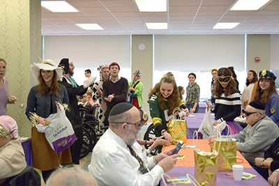 Margaret Tietz Center was proud to support community Purim parties. 250 Mishloach Manot bags were created at Margaret Tietz for seniors throughout the community. We were glad to be part of the celebrations at the Young Israel Forest Hills Senior Center, Young Israel Queens Valley Senior League, and Ohr Natan. We had a wonderful celebration here at Margaret Tietz for our residents here at Margaret Tietz which started with a dance group under the direction of Atara Serle from the Yeshiva Bnos Malka. A group of beautiful fifth grade girls came to dance, brought their smiles, and enthusiasm to our grateful residents. Lander College Students came by in full costumes, with musical instruments, and singing which brought the Purim Celebration at Margaret Tietz to new heights! Two additional groups of teenage girls from Kew Gardens Hills, in fantastic costumes took it upon themselves to join the festivities and bring Mishloach Manot bags for our residents. Another group of boys came from Woodmere with Mishaloach Manot bags donated from Gourmet Glatt and a mom from the community with two of her children, one on a unicycle definitely brought a new twist to Purim. We are so grateful to the outpouring of the community for the residents of Margaret Tietz. Margaret Tietz was definitely a destination for Purim this year.