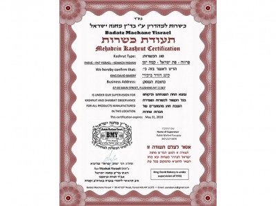 The Chief Bukharian Rabbinate is proud to notify the community that King David Bakery, located at 67-03 Main Street in Kew Gardens Hills fully satisfies the criteria for kashrut in accordance with the Sephardic halacha. Accordingly, Chief Rabbi Harav Yitzchak Yisraeli certifies King David Bakery as reliable in all matters of Kashrut, for as long as it abides by the rules and regulations of Sephardic halacha. Anyone purchasing baked goods at King David Bakery can be certain that the goods conform to halachic requirements as long as they see a certificate by the “Badatz Machane Yisrael” on the store window. The certificate can be found immediately next to the VHQ certificate of Kashruth.