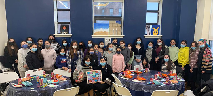Teenage Girls Celebrating Purim At CHAZAQ’s Jwave Teens Lounge In Forest Hills