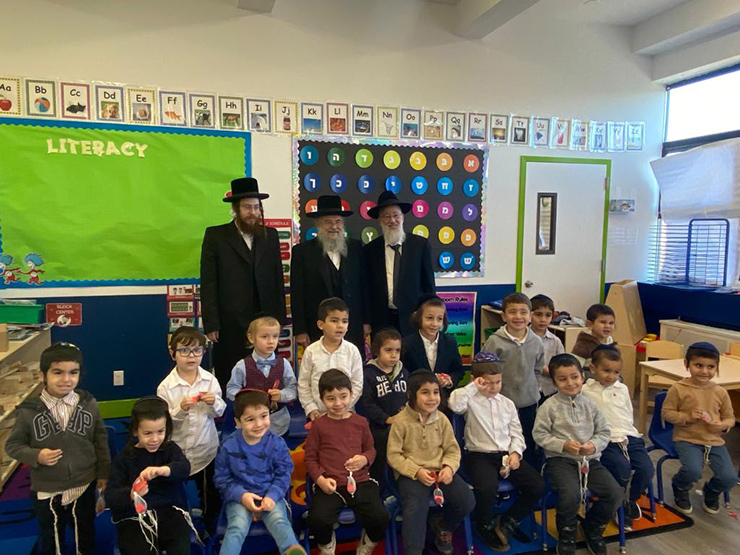 The Cheder Moshe Raya Mehamina welcomed Rav Noach Isaac Oelbaum, marah d'atrah of Khal Nachlas Yitzchak to deliver brachot to the boys. The rav was