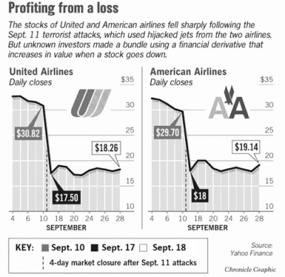 Speculators bought call options on defense, security, and related industries, while others bought put options on airlines, entertainment, insurance, and some financial firms. It’s interesting to note that the number of options that traded just before the 9/11 attacks and immediately afterward was way above normal. In any case, in the short term, some option bulls and bears made significant profits.