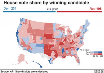 Вместе с тем, палата Представителей, судя по итогам голосования, стала вотчиной Демократической партии. И хотя этот факт мало кого удивил, поскольку на сей раз предварительные данные опросов, выдаваемые социологическими службами страны, отличались несравнимо большей осторожностью и объективностью, в отличие от ноября 2016 г., когда все без исключения оценки прочили победу Хиллари, от чего её поражение было воспринято сторонниками многократно болезненей и агрессивней.