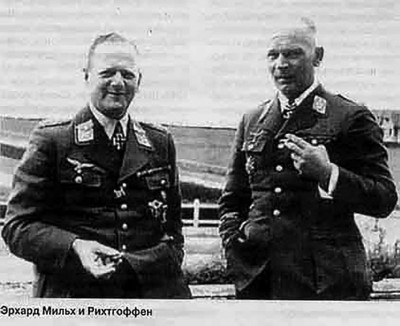 Классическим примером “скрытого еврея” в элите Третьего рейха можно считать фельдмаршала авиации Эрхарда Мильха. Его отцом был еврей-фармацевт. Из-за еврейского происхождения Эрхарда не приняли в кайзеровские военные училища, но начавшаяся Первая мировая война открыла ему доступ в авиацию, Мильх попал в дивизию знаменитого Рихтгоффена, познакомился с молодым асом Герингом и отличился при штабе, хотя сам на аэропланах не летал. В 1920 году Юнкере оказывает протекцию Мильху, продвигая бывшего фронтовика в своем концерне. В 1929 году Мильх становится генеральным директором “Люфтганзы”–национального авиаперевозчика. Ветер уже дул в сторону нацистов, и Эрхард бесплатно предоставляет самолеты “Люфтганзы” для лидеров НСДАП.